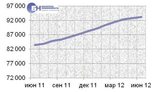 В среднем по вторичному рынку цена предложения на однокомнатные квартиры повысилась за минувший месяц на 0,1%, на двухкомнатные – на 0,5%. Трехкомнатные квартиры показали изменение на 0,5%. Средние цены предложения на конец июня 2012 года составили на однокомнатные квартиры 3,8 млн руб., на двухкомнатные квартиры 5,4 млн руб., на трехкомнатные – 7,6 млн руб.